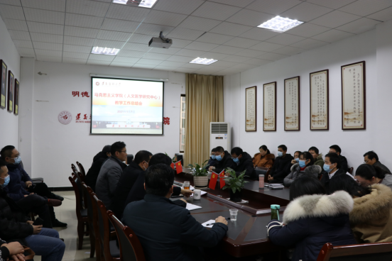 谷松岭院长首先向老师们对本学期教学工作的辛勤付出表示了感谢,指出我院一直将教学工作摆在首要位置,并取得了一定的成绩,接下来谷院长向参会教师通报了学校教学督导组对我院教学工作的反馈情况,并进一步指出,虽然我院教学工作取得了一些成绩,但仍然存在不少问题,需要我们反思。一是我院部分教师承担的课时量较大,教学效果不佳;二是教学规范性不够,教学水平参差不齐;三是教学实效性有待提高。谷院长指出,我院承担的思想政治理论课不同于一般课程,具有特定的教学目标,不仅要向学生传授马克思主义理论知识,更重要的是要提高学生的思想政治素质和进行价值观教育,必须树立以立德树人为根本目标,不断提高教学技能、优化教学设计、增强教学效果。