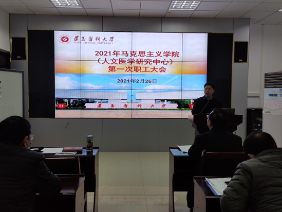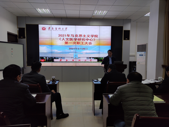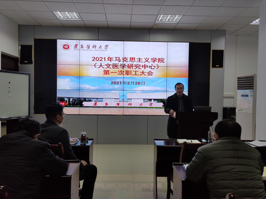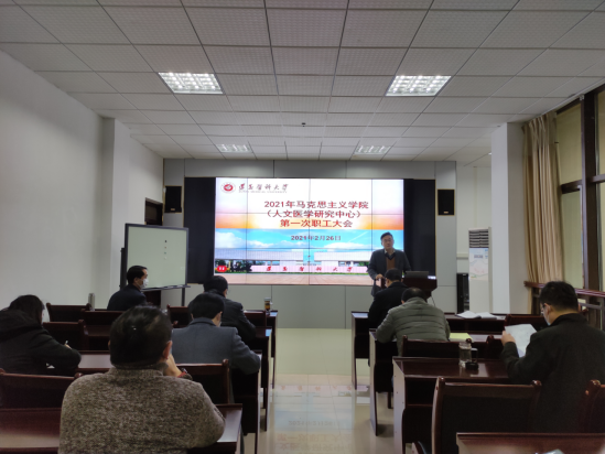 2021年2月26日上午,437必赢会员中心(人文医学研究中心)在人文楼313多功能厅召开了新学期全体职工会暨教学准备会。会议由437必赢会员中心党委书记李荣远主持,437必赢会员中心(人文医学研究中心)班子成员和全体教职工参加了会议。