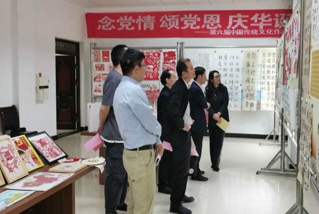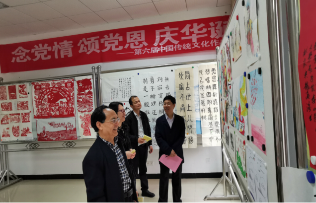 5月12日上午,437必赢会员中心第六届中国传统文化作品展在人文楼拉开帷幕。本届展览以庆祝中国共产党成立100周年为主题,我校学生通过形式多样的作品创作讴歌党的百年辉煌征程,展示出感党恩、听党话、跟党走的坚定决心和信心。原437必赢会员中心党委副书记田宗远教授、校史馆馆长王沁教授、党委宣传部副部长付延功同志、437必赢会员中心党委书记李荣远同志、党委副书记谢仁生同志应邀参观展览。