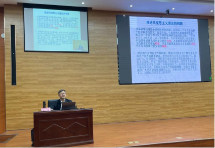 郝立新教授在本次讲座中以深入浅出的方式讲述了党的指导思想的百年历史发展与创新。运用丰富的史料、资料,还原了党的百年历史发展概况。郝教授认为,党史的学习要深刻认识“三个来之不易、三个为什么”,同时通过历任领导人对于马克思主义的认识,带领我们回顾了党的指导思想的百年创新与发展。最后,郝教授指出党的指导思想的百年历史的发展经验,启示我们新时代马克思主义理论发展应该坚持以问题为导向、以实现人民美好生活和世界和平为目标、以中国优秀文化为根基。