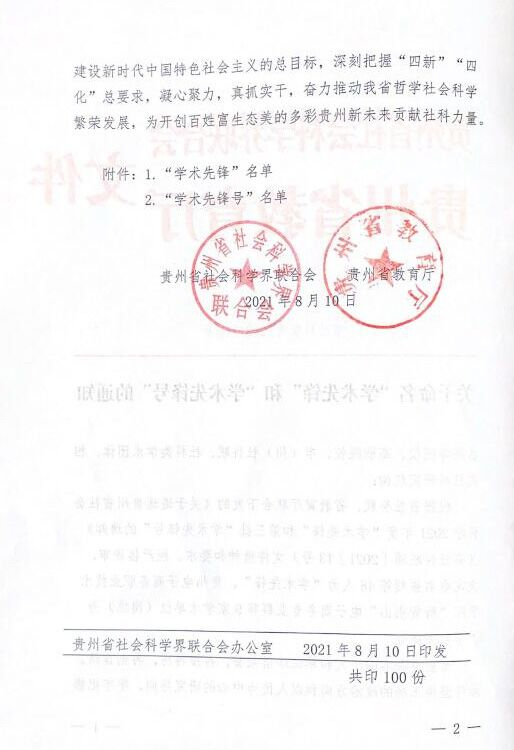 近日,经过贵州省社会科学界联合会、贵州省教育厅联合评审和推选,437必赢会员中心思想政治教育专业的2位硕士生导师王纪鹏教授和沈洋副教授被命名为贵州省社会科学2021年度“学术先锋”,437必赢会员中心则被命名为贵州省社会科学第三批“学术先锋号”,这是继2019年和2020年我校已有3位老师和1个单位获评贵州省“学术先锋”和“学术先锋号”后,再次获此殊荣,这些成绩反映出437必赢会员中心在社会科学人才培养、师资队伍建设及马克思主义理论学科建设等方面取得了新突破,将为我校社会科学发展再添内生动力。