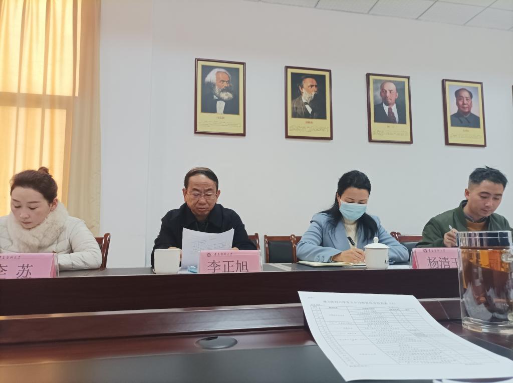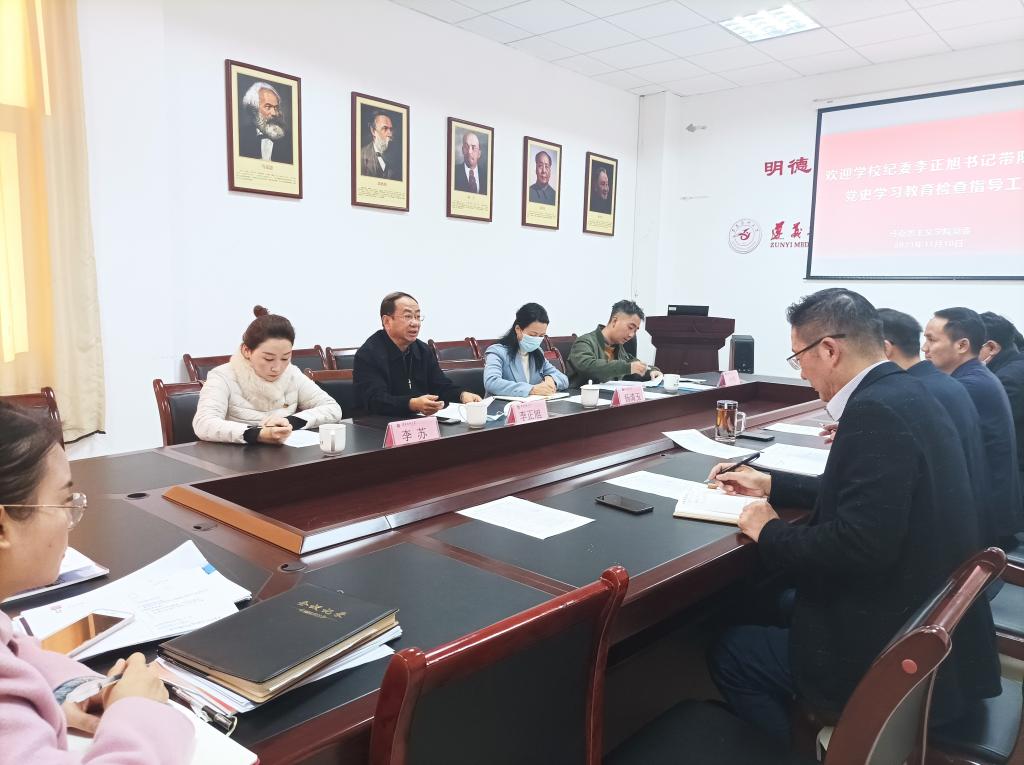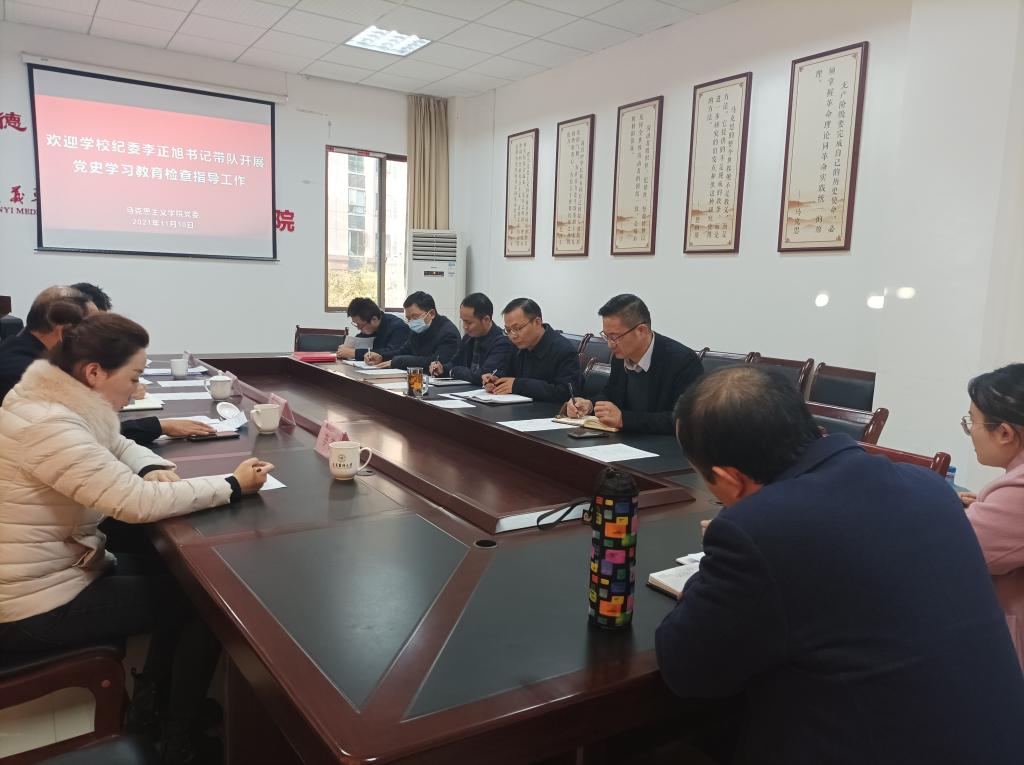 11月10日上午8:30,学校纪委李正旭书记带领机关党委书记、教师工作部部长杨清玉同志,以及党史办李苏、纪委付伟等一行,到马院就党史学习教育情况开展检查指导工作,我院党委、行政负责人及党支部书记、支部委员和教师党员代表一同接受检查指导。