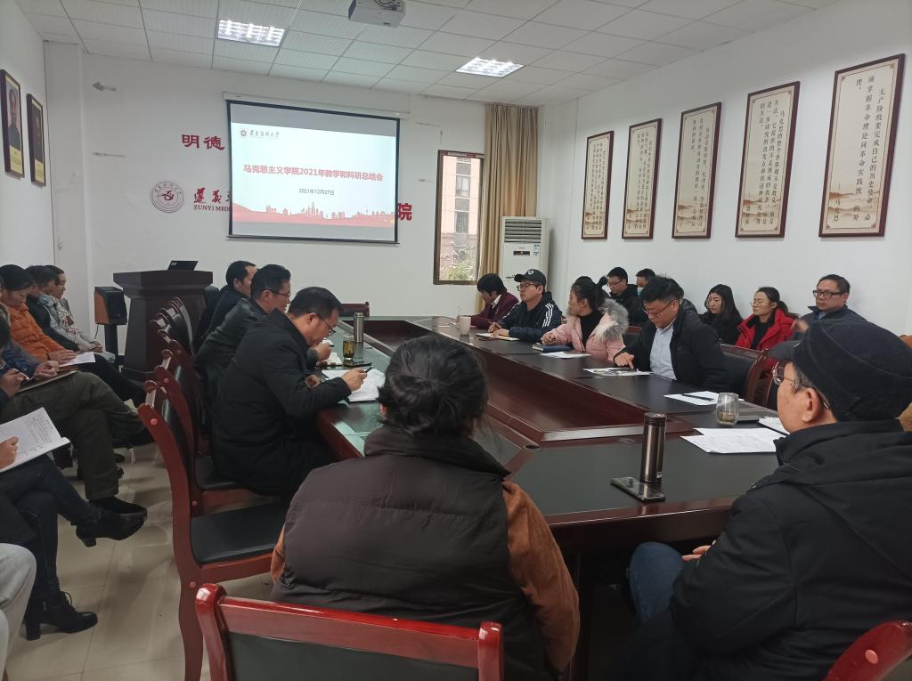最后,鲍中义副院长对分管工作进行总结。他指出,学院在后期教学检查工作中表现不错,受到了学校督导组的高度评价,感谢老师努力工作。对于研究生教育方面,下学期初,思想政治教育两个年级的6名研究生将转到珠海校区进行培养。对于科研工作方面,鲍中义副院长指出,副高以上职称或有博士学位的老师必须申报2022年的国家社科基金和教育部有关项目,同时要避免扎堆申报,选题良好且前期成果较好的老师应积极申报国家社科基金项目;申报省级课题应尽量与贵州省的经济社会发展相联系;下月初学院将召开申报论证会。