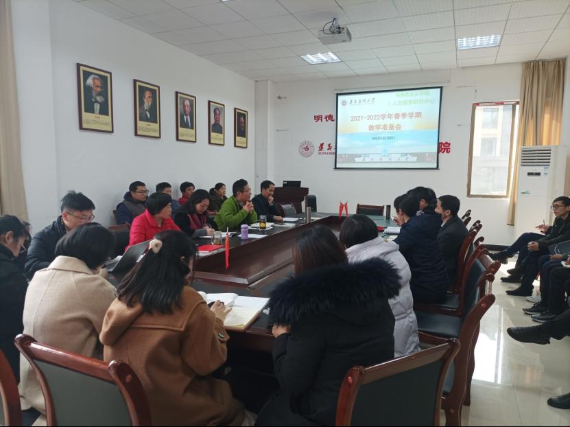 2022年2月25日下午2:30,437必赢会员中心(人文医学研究中心)在人文楼321会议室召开了春季学期教职工大会暨教学准备会。会议由437必赢会员中心党委副书记、院长谷松岭教授主持,437必赢会员中心(人文医学研究中心)班子成员和全体教职工参加了会议。