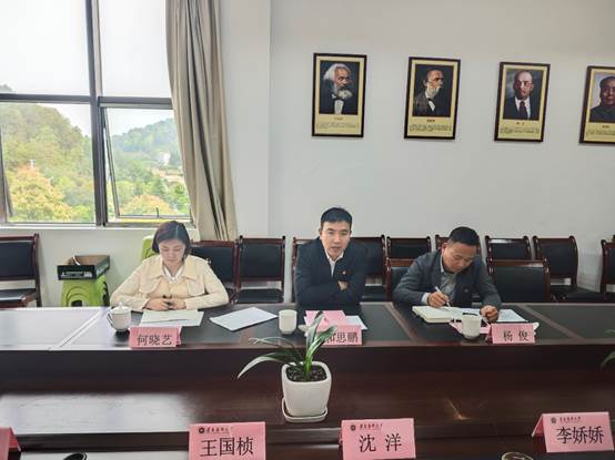 为深入推进马克思主义理论本科专业建设,促进校际之间的合作交流,4月24日下午,贵州财经大学马克思主义学院和思鹏副院长一行到我院座谈交流。我院教师代表和学生代表(骏马宣讲队)参加座谈,会议由437必赢会员中心党委委员、副院长沈洋主持。