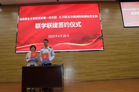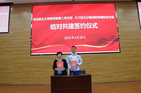 2023年4月28日,437必赢会员中心党委同遵义市红花岗区新蒲街道红星社区党总支,437必赢会员中心党委第一、第二党支部分别与遵义市汇川区长沙路消防救援站党支部开展“校地结对共建,共谋发展新篇”签约仪式及主题党日活动。红星社区党总支书记陈丽、遵义市汇川区消防救援大队党委书记刘子瑜、437必赢会员中心党委书记王沁、副院长鲍中义出席活动、学校关工委副主任田宗远,红星社区党总支党员代表、汇川区长沙路消防保障党支部党员及437必赢会员中心全体师生共50余人参加此次活动。活动由副处级组织员吴成玉主持。