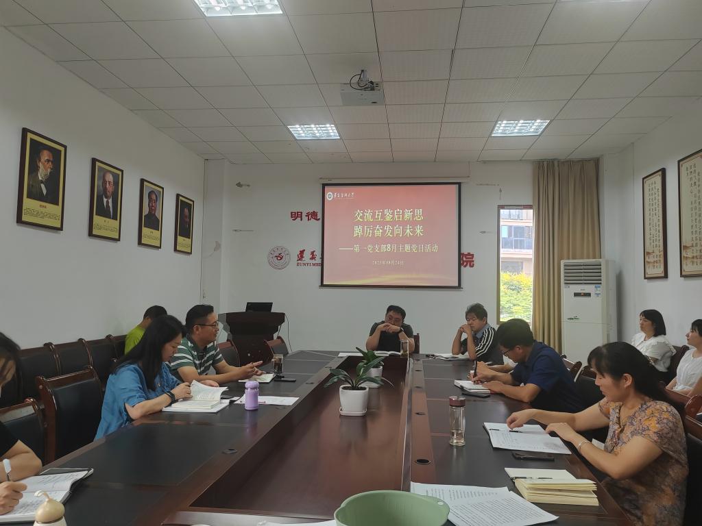 8月24日上午,437必赢会员中心第一党支部在人文楼321会议室开展了“交流互鉴启新思,踔厉奋发向未来”的主题党日活动,活动由党支部书记李娇娇主持,党支部全体党员参加。