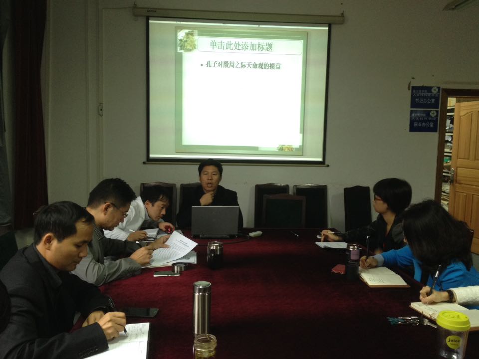 2014年10月31日上午,人文社科学院在学院会议室举行了本学期第二次人文社科论坛。此次活动由人文社科学院副院长谢仁生博士主讲,全院无课教师全程参与。