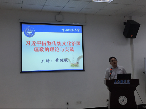 在本次讲座中,黄延敏教授围绕着“习近平同志对传统文化的新审视”、“习近平同志重视传统文化的原因”、“习近平同志的传统文化馆”、“十八大以来传统文化与治国理政”四个方面进行深刻地剖析。讲述工程中,黄延敏教授引入了许多典型案例,使整个报告会深动形象,师生们不时报以热烈的掌声。