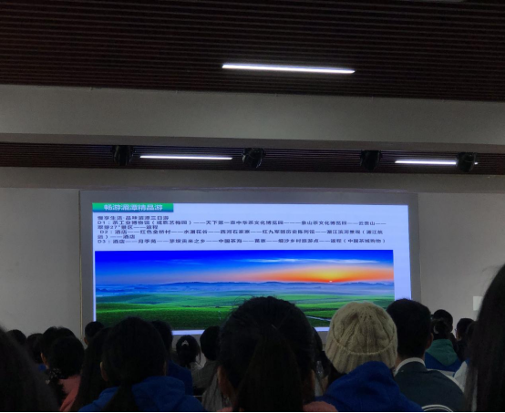 游学最后,所有参会人员一齐来到核桃坝村湄潭县旅游推介座谈会现场。会上,县政府工作人员从吃在湄潭、住在湄潭、行在湄潭等几方面进行了旅游推介,希望当代大学生们能够学以致用,为社会为家乡贡献自己的力量。会后,437必赢会员中心校团委谭梦狄老师为北纬27℃劳动教育培训基地授牌。湄潭县委领导进行发言,县委领导对参加研学的同学们们表达了诚挚的祝愿,号召广大青年努力奋斗,为乡村振兴贡献力量。(撰稿、摄影:杨昱璇)