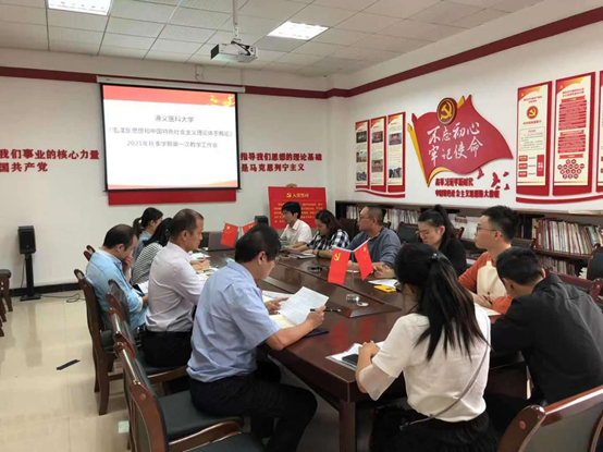 陈俊老师对《毛泽东思想和中国特色社会主义理论体系概论》的教学任务进行了安排。由于2021年版的新教材尚未印刷出来;因此,决定开学后继续使用2018年版的教材。老师们针对之前教学工作中日常教学注意事项、课堂PPT汇报、基础理论专题学习、成绩核算等方面出现的问题,提出了具体解决方案。