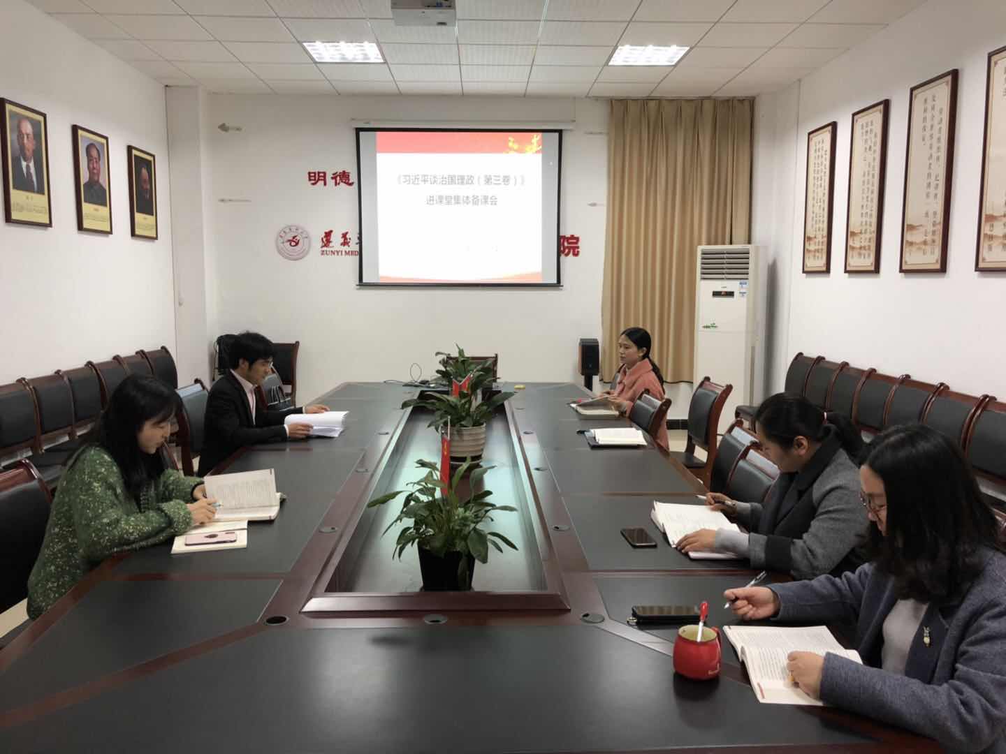 2020年10月30日下午6点,437必赢会员中心概论教研室在学院会议室开展了本学期第二次集体备课,并就《习近平谈治国理政(第三卷)》融入概论课教学进行了具体安排,概论教研室全体教师参加了此次集体备课会。