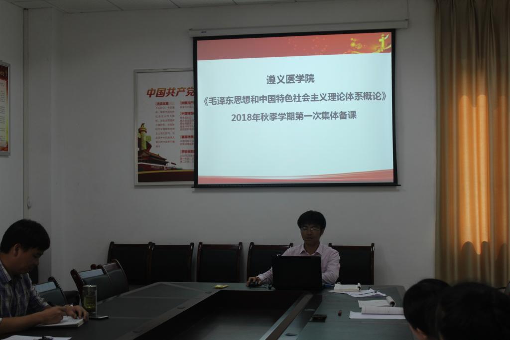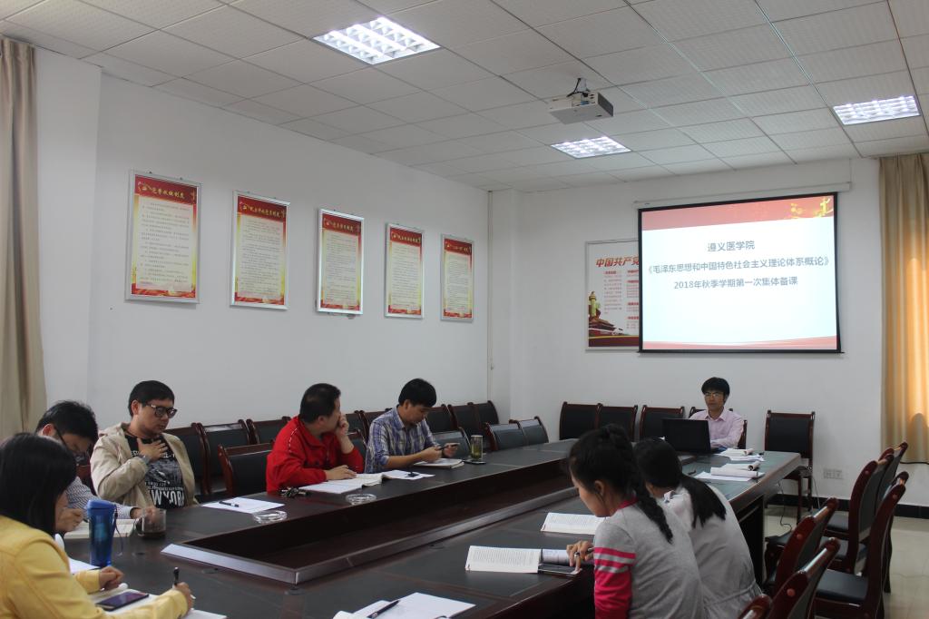为了提高备课效果和教学水平,增强课堂教学效果,更好地凝聚集体智慧,努力提高教育教学的质量,遵义医学院437必赢会员中心“概论”教研室于2018年9月14日在人文楼三楼会议室开展了2018年秋季学期第一次集体备课活动。此次集体备课由“概论”教研室副主任陈俊教授主备,“概论”教研室全体老师参加。
