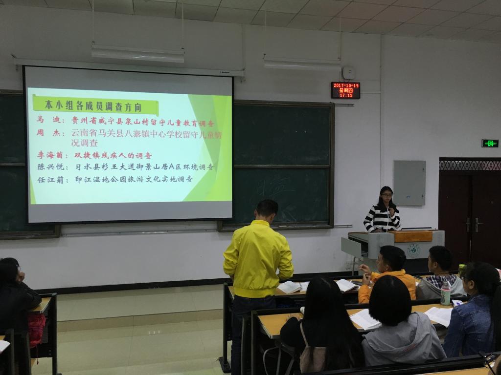 按照“概论”课程2017年教学计划,自2017年9月18日以来,“概论”教研室在课堂教学中安排学生以小组为单位,举行了暑期社会实践课堂PPT汇报活动。丰富的内容、精彩的报告,充分展现了我校2016级大学生的实践风采和精神面貌。