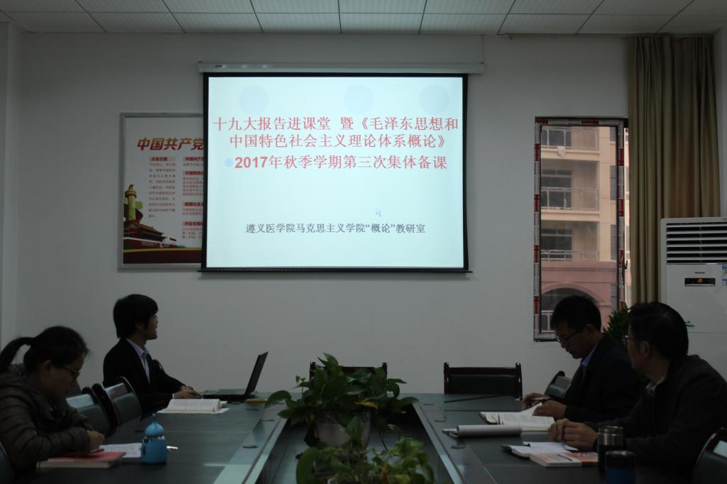 为了深入学习党的十九大报告精神,认真贯彻落实学校党委《关于认真学习贯彻党的十九大精神的通知》精神,2017年11月16日下午2点,437必赢会员中心“概论”教研室在学院三楼会议室举行了“十九大报告进课堂” 暨2017年第三次集体备课会。会议由人文社科党总支副书记、副院长谷松岭教授主持。