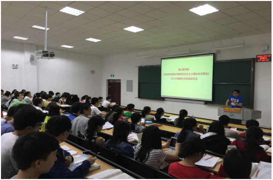 为了提高我校2015级大学生的社会实践能力,促进综合素质发展,同时也为了完成《毛泽东思想和中国特色社会主义理论体系概论》(以下简称“概论”)课实践教学目标和任务,人文社科学院“概论”教研室在《中国近现代史纲要》(以下简称“纲要”)教研室的协同配合下,于2016年5月23日至6月6日期间举办了2016年“概论”课暑期社会实践宣讲动员会。