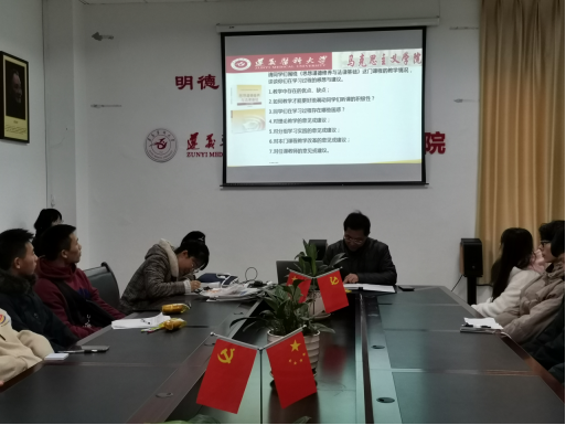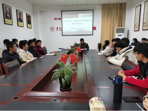 为进一步提高“思想道德修养与法律基础”课的教育教学质量,切实做到教与学相互促进,思想道德修养与法律基础教研室于12月16日12时30分在人文楼321会议室召开了教学相长会。会议由教研室主任简红江教授主持,教研室教学秘书李静老师和2020级各班学生代表参加。