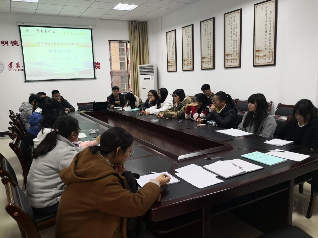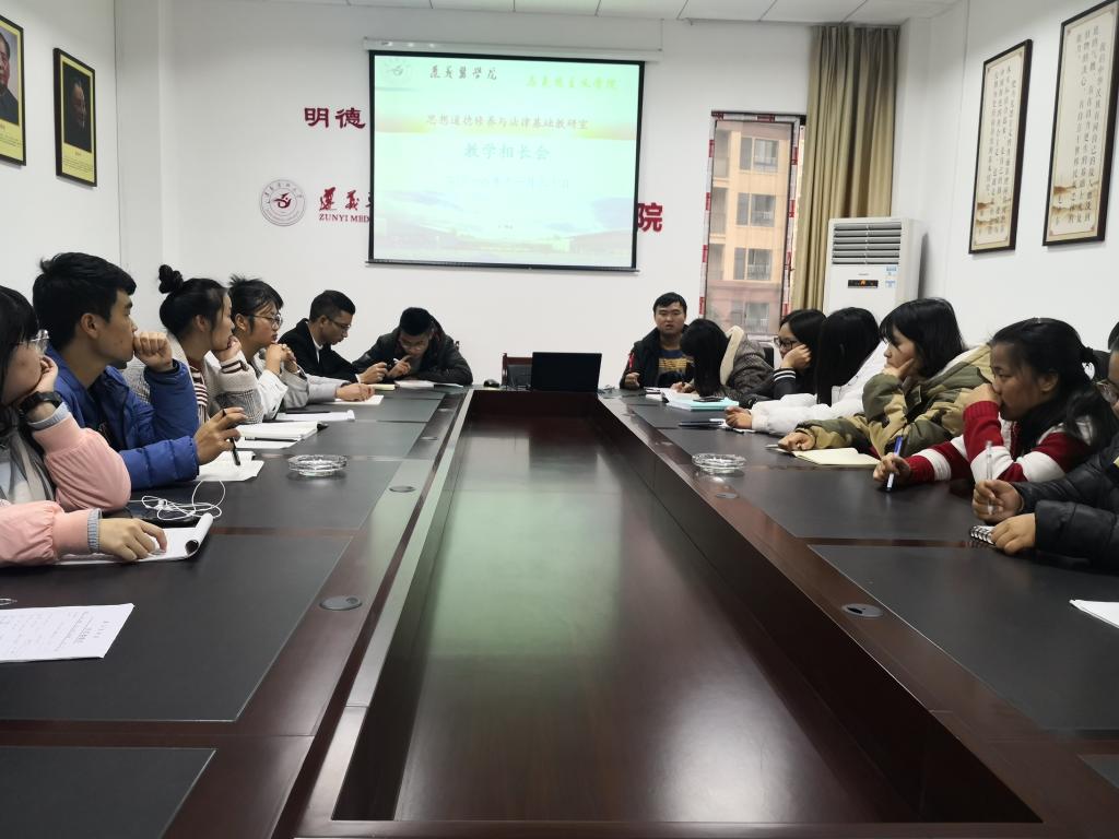 为进一步提高“思想道德修养与法律基础”课的教育教学质量,切实做到教与学相互促进,思想道德修养与法律基础教研室于11月30日12点40分在人文楼321会议室召开了教学相长会。会议由教研室主任鲍中义教授主持,教研室教学秘书李静老师和2018级各班学生代表参加了本次教学相长会。