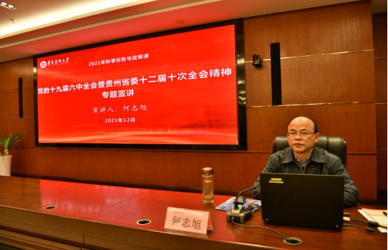 为深入学习贯彻党的十九届六中全会精神和贵州省委十二届十次全会精神,12月23日下午,学校党委书记何志旭深入所联系的教工、学生党支部,为师生上形势与政策课。机关党委第三党支部、基础医学院党委教工第二党支部、临床医学专业学生第四党支部和儿科医学专业2020级1班全体学生共120余人参加学习。