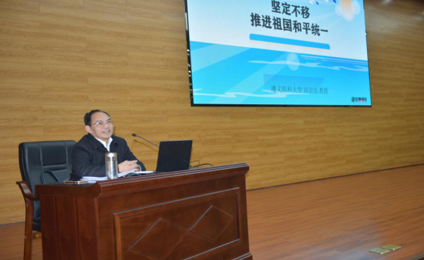 11月27日晚7点,学校党委副书记田宗远教授以《坚定不移推进祖国和平统一》为题,在人文楼道德讲堂为大学生上形势与政策课。形势与政策教研室主任邢瑞娟、部分思政课教师以及来自各院系近400名大学生聆听。
