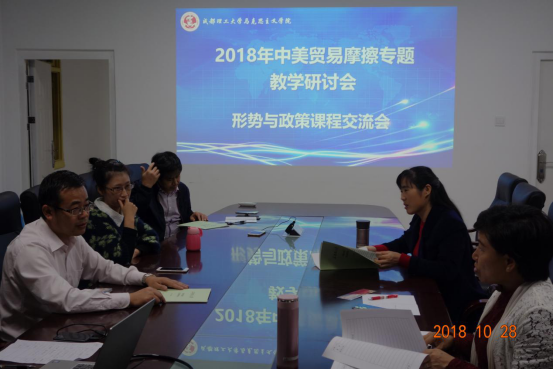 2018年10月27日晚,我院形势与政策教研室邢瑞娟、王纪鹏教师参加了由成都理工大学马克思主义学院组织的形势与政策交流会,同时参会的还有广东石油化工大学、信阳农林学院等高校。成都理工大学马克思主义学院思想政治理论与实践教学中心主任廖怀高老师和形势与政策教研室黎萍老师分别就该校形势与政策课理论与实践教学跟大家一起分享了经验。该校形势与政策课教学团队2014年曾获得四川省省级优秀教学团队。同时其他高校教师也就本校如何开展形势与政策课的经验进行了交流。通过本次学习,对我校形势与政策课的教学也是一个促进。今后在教学中我院将兄弟高校好的做法进行复制推广,力争使思想课成为一门让学生喜爱,获得感很强的课程。