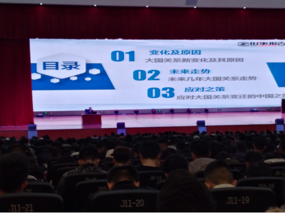 罗书记首先通过分析2018年7月16日“赫尔辛基·美俄会晤”与“北京 · 中欧峰会”两个非常重要的会议来引出讲座的三个主要内容,即:当前大国关系发生的新变化及其原因、未来几年大国关系走势以及应对大国关系变迁的中国之策;之后,罗书记引用了习近平总书记的“把握国际形势要树立正确的历史观、大局观、角色观”这句话来引导学生正确看待当前各国的关系;最后,罗书记用大量的案例以及坚定而自信的语气给学生们全面的分析了当前大国之间到底发生了什么样的新变化、未来到底会走向何方以及中国又该如何应对这三个问题。