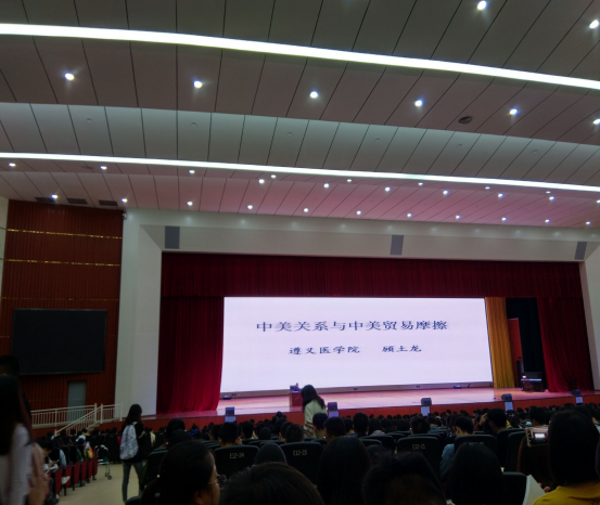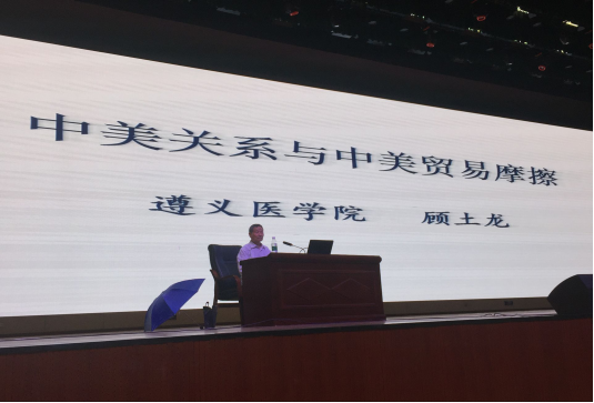 为贯彻落实《教育部社科司关于2018年秋季学期全国高校“形势与政策”课开展开学专题教学的通知》(教社科司函[2018]155号)和省教育厅相关文件精神,2018年9月25日至29日,遵义医学院在校学生在学校会堂开展形势与政策课“中美关系与中美贸易摩擦”专题教学,由顾土龙教授进行专题授课。