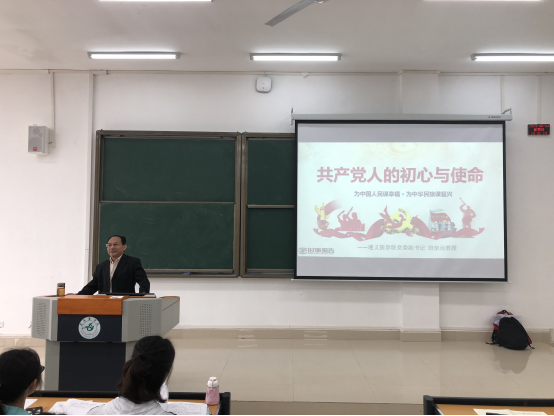 6月3日,我校党委副书记田宗远教授在十七阶梯教室为我校2017级护理、助产专业学生讲授形势与政策课,本次课讲授的专题为“共产党人的初心与使命”。