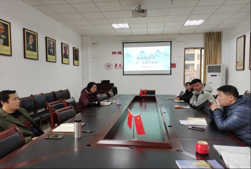2022年2月24日上午,美育教研室在人文楼321会议室召开本学期课程教学准备工作会议。教研室负责人郭坦老师主持,全体授课教师参加。